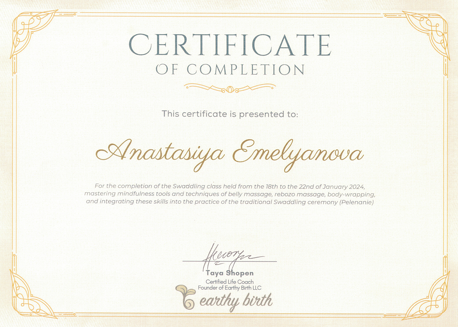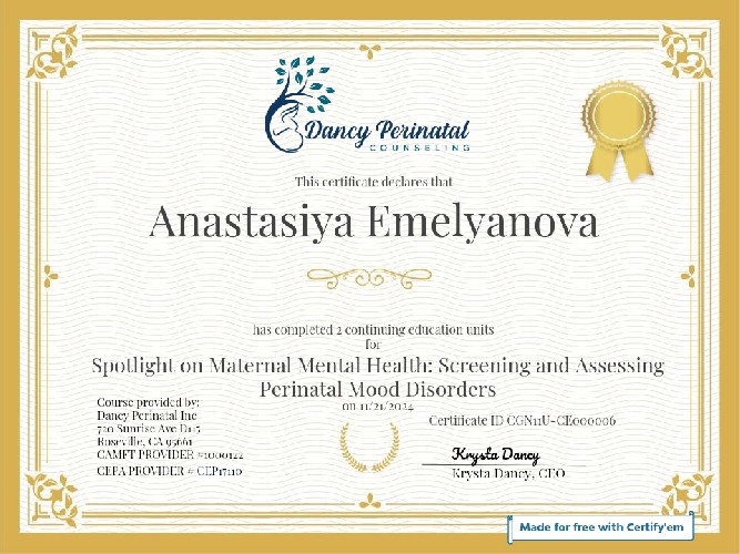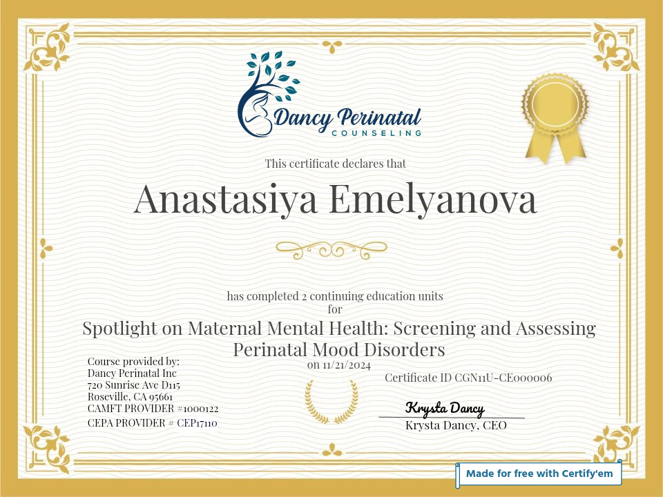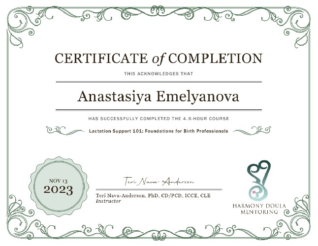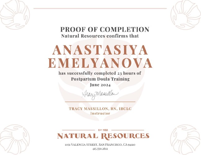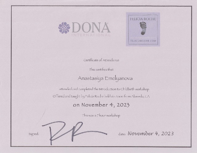 I have trained in internationally recognized perinatal support education organizations and have received international certifications to support my qualifications. I have worked as a medical assistant and doula.