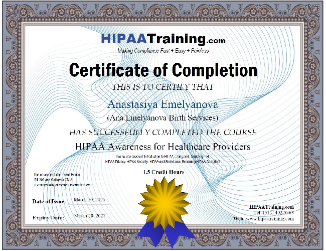 I have trained in internationally recognized perinatal support education organizations and have received international certifications to support my qualifications. I have worked as a medical assistant and doula.